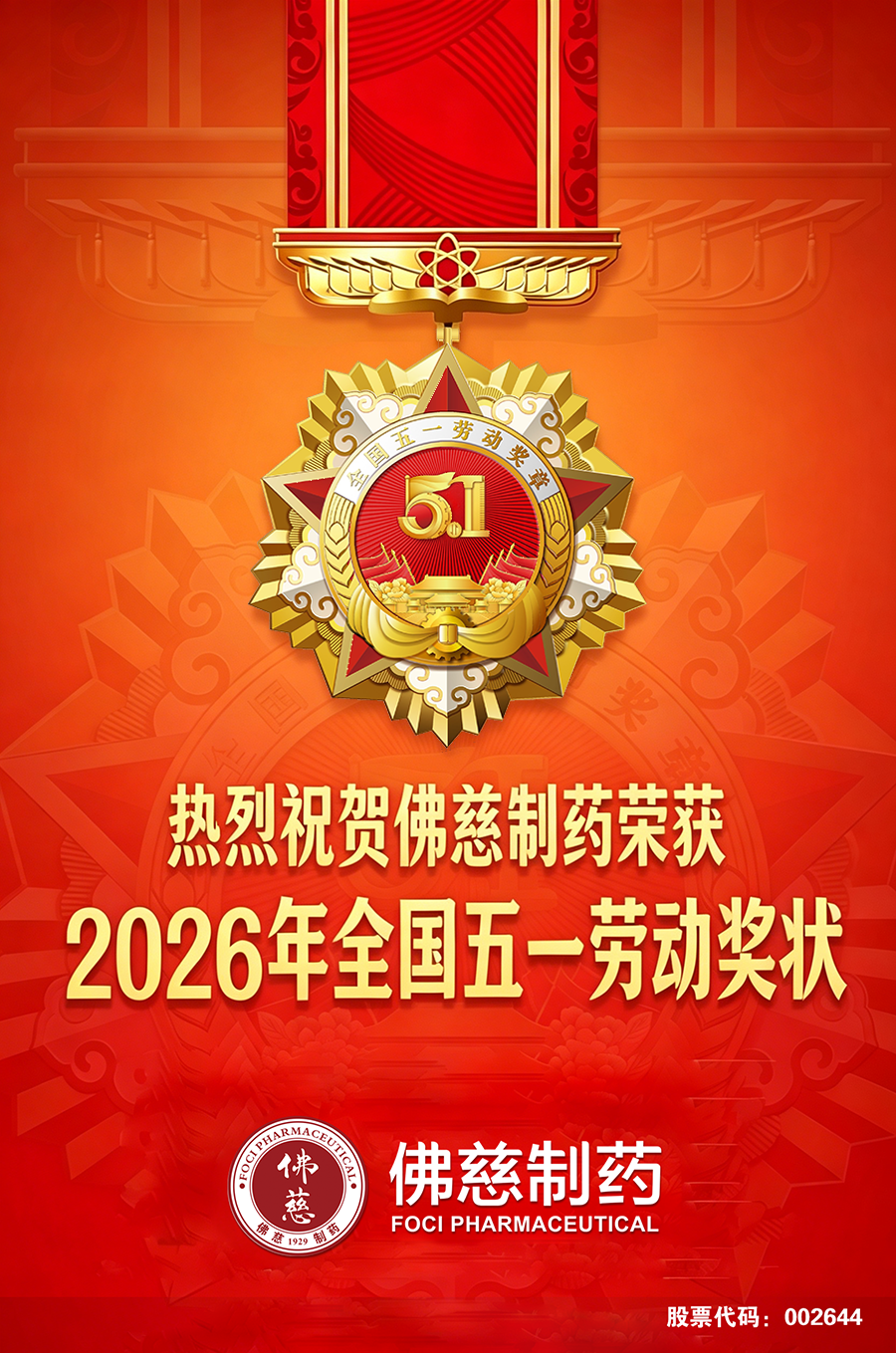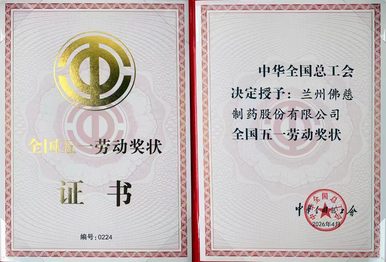喜报!佛慈制药荣获2026年全国五一劳动奖状!